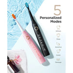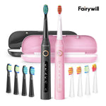 Fairywill FWET Ultrasonic Electric Toothbrush with 5 Modes , Dual Pack Sonic Rechargeable Toothbrush, Black & Pink. Fairywill is a brand about family, friends and caring. Fairywill D7 adults toothbrush set - The toothbrush set is an affordable pack of 2 designed for multiple users, now everyone's oral health can enjoy a cooler, cleaner care, and share the benefits of ultra powerful clean with a 2-min build-in smart timer to always deliver the best results. Suitable for families, especially for couples. Designed for Adults and kids beyond 8. We combine fashion with efficient cleaning to bring the best oral care tools.