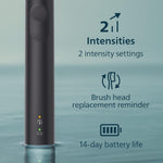 • Rechargeable toothbrush providing up to 14 days of regular brushing on a full charge