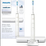 Always get it right with the Philips Sonicare DiamondClean 9000. Experience improved oral health with up to 10x more plaque removal vs. a manual toothbrush. With a built-in pressure sensor and the smart sensor progress report, the DiamondClean 9000 has everything you need to guide you into better oral healthcare habits starting day one. The Premium brush heads clean effectively along the gum line where gum disease commonly starts out. Experience 7x healthier gums in just 2 weeks. Personalize your brushing experience with 4 modes and 3 intensities and always know when to replace your brush head with BrushSync Technology replacement reminders. The Philips Sonicare DiamondClean 9000 will look beautiful in your bathroom, with an elegant charging glass and premium finishings.