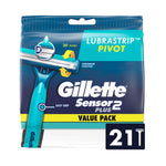 Gillette Sensor2 Plus Men's Disposable Razors, Twin Chromium-Coated Blades, Pivoting Head, Water-Activated Lubrastrip, Soft Ultragrip Handle, Light Blue, Pack of 21