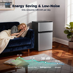 - 2-in-1 Large Capacity Design: Combines a 0.9 cu.ft freezer and 2.3 cu.ft refrigerator in one compact unit to store frozen foods and fresh items efficiently.