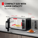 This Toshiba Compact Microwave Oven ML-EM09PA(SS) delivers efficient and reliable cooking performance with 900 watts of output power and a spacious 0.9 cubic feet interior. Designed for countertop use, it features six preset menus including popcorn, pizza, and potato for quick meal preparation. The microwave offers 11 adjustable power levels to tailor cooking intensity for various dishes, along with a one-touch start function for easy operation. Safety is prioritized through a mandatory two-step child lock that prevents accidental activation by children. Additionally, the mute mode lets you silence the end-of-cooking beep for a quieter kitchen environment. The unit includes a removable 10.6-inch glass turntable that ensures even heating and easy cleaning. Its sleek stainless steel exterior complements modern kitchens while fitting comfortably in compact spaces such as apartments or dorm rooms. This microwave combines practical features with user-friendly controls to enhance everyday cooking convenience.