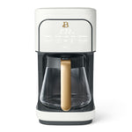 Experience the perfect start to your day with the Beautiful 12-Cup Programmable Coffee Maker by Drew Barrymore. Designed to brew rich and flavorful coffee, this coffee maker offers versatile strength options including Regular, Gourmet, and Bold to suit every taste. Its 12-cup capacity is complemented by a 1-4 cup mode that ensures bold flavor even in smaller servings. The programmable 24-hour timer lets you schedule brewing in advance for ultimate convenience. Safety features like auto shut-off provide peace of mind, while the keep warm function maintains your coffee's ideal temperature for up to four hours. The nonstick warming plate resists stains and is easy to clean, enhancing maintenance ease. Included are a glass carafe, lid, reusable gold-tone filter, and measuring scoop—all dishwasher safe for effortless cleanup. Powered by a robust 1200-watt system and featuring a touch-activated display that lights up when needed, this coffee maker combines smart technology with elegant aesthetics to elevate your coffee experience.