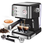 Bluebow CM3020 Espresso Machine 20 Bar, 1.5L Water Tank Pressure Gauge Milk Frother Steam Coffee Maker, Silver Color: Silver & Black