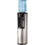 - Hot and cold water dispenser with a stainless steel exterior