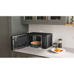 The Mainstays 1.1 cu ft Countertop Microwave Oven combines functionality and convenience in a sleek black design suitable for any kitchen. Equipped with a powerful 1000-watt motor and 10 adjustable power levels, it allows precise cooking tailored to your needs. The microwave features six express-cook buttons designed for popular items such as potato, popcorn, pizza, beverage, frozen dinner, and reheat, enabling quick meal preparation with just one touch. Defrosting is made simple with both weight and time defrost functions, ensuring your food is thawed evenly and safely. Safety is enhanced with a child lock feature that prevents accidental operation. The durable glass turntable promotes even cooking by rotating food consistently during the cycle. Navigation is user-friendly thanks to the clear LED display and auto menus that streamline setting adjustments. This countertop microwave oven is perfect for families or individuals seeking an efficient and versatile cooking appliance that meets daily kitchen demands.