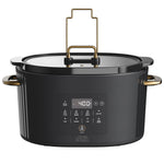 The Thyme & Table 6 QT Slow Cooker offers a modern approach to slow cooking with its intuitive design and multiple cooking functions. Its large 6-quart capacity serves up to seven people, making it ideal for family meals or entertaining guests. The non-stick ceramic inner pot allows for searing and braising directly in the cooker, simplifying meal preparation and cleanup. Equipped with four custom presets—Meat/Stew, Chili/Beans, Soup/Broth, Poultry—and four heating modes including High, Medium, Low, and Keep Warm, this slow cooker provides precise control over your cooking process. The tempered glass lid features a silicone rim and finger guards for safe handling, while the included lid holder offers mess-free storage during cooking or serving. Additional features such as a delay start button and integrated cord management enhance convenience and safety. Dishwasher-safe parts ensure easy maintenance, while cool-touch stainless steel handles provide durability and comfort when lifting. Whether preparing hearty stews or delicate broths, this slow cooker delivers consistent results with style and ease.