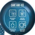 Designed for the everyday cook, the Thyme & Table 12.5-Inch Non-Stick Fry Pan from the Blue Granite Collection offers exceptional value without compromising quality or performance. Constructed with heavy-gauge forged aluminum and a stainless steel base, this pan delivers excellent durability and reliable heat distribution for consistent cooking results on all stovetops including induction. The speckled nonstick interior ensures rapid food release and simplifies cleanup, while the soft-touch handle provides a comfortable grip that remains cool during cooking. Its vibrant blue granite finish adds a stylish touch to your kitchen essentials. This versatile pan is perfect for frying, sautéing, searing, steaming, and more. It is dishwasher safe for convenient cleaning but hand washing is recommended to maintain longevity. Free from PFOS and PFOA, it supports healthier cooking practices. Elevate your culinary experience with this essential fry pan that blends functionality with eye-catching design.
