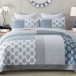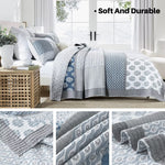 Bedduvit Quilt for King Bed - 100% Cotton Blue Gray Floral Real-Patchwork Plaid Striped Farmhouse King Quilt Bedspread Reversible Modern Lightweight Quilt Set with Shams 3-Piece (98 x106 )