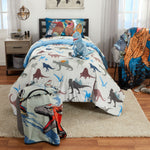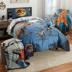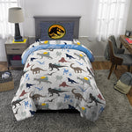 Jurassic World Kids 4 Piece Twin Bed In A Bag Bedding Set, Reversible Comforter, Polyester Microfiber, Blue Gray, 7B0517