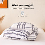 Sonive Waffle Duvet Cover Set, Breathable Waffle Weave, Blue Grid Plaid, Queen