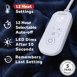 - Customizable Warmth: Fast Heating with 12 heat settings and an easy push-button controller for personalized comfort, Queen and King include dual 2 controllers for independent control on each side