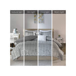 Freshen up your bedroom with the enchanting style of the Arielle Metallic Printed Comforter Bedding Set with Decorative Pillows. The stunning comforter flaunts a geometric metallic print for a fun and eye catching look! Matching sham(s) echoes the design seen on top of the bed to pull the entire ensemble together. Two embroidered decorative pillows with typography and metallic, complete this fabulous comforter set.