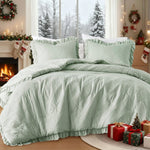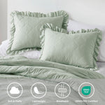 The Regency Heights Comforter Set is designed to bring both style and comfort to your bedroom. Featuring a diamond-quilted top with delicate ruffled edges, this bedding set adds a sophisticated touch to any decor. Made from 100% microfiber fabric that has been pre-washed, it delivers enhanced softness and a smooth feel against the skin. The comforter is filled with premium polyester, providing a fluffy and midweight warmth ideal for year-round use. Its solid-colored reverse side allows for versatile styling to match your room's aesthetic. Certified by Oeko-Tex 100, this set is free from harmful substances, making it safe and gentle for all ages. The hypoallergenic properties help reduce allergens, promoting a healthier sleep environment. Easy to maintain, the comforter set is machine washable on a gentle cycle, ensuring long-lasting freshness and comfort. Whether updating your master bedroom or guest room, this set offers a blend of elegance and practical comfort that enhances your sleeping experience.