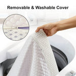 - Removable, machine-washable rayon cover