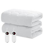 JUSTLET Heated Mattress Pad Queen Size with Dual Control 9 Heated Settings, Zone Heating Electric Mattress Pad, Auto Shut Off 1-9 Hours, Machine Washable, White This heating mattress Polyester pad can provides you with the warmth you want throughout the night, with multiple temperature settings, and can be set to automatically turn off at any time, safe and reliable, without the layer blankets and heavy quilts. Keep your bed warm and comfortable from the moment you enter it, until you wake up refreshed. Emits virtually "0" electromagnetic radiation and comes in deep pocket to fit most premium mattresses, up to 21" thickness. Conveniently machine washable and carry 5 years limited product . Twin and Full come with 1 controller,while bigger sizes come with 2 controllers. Multiple size Optional: Twin, Full, Queen, King and California King