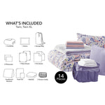 The Mainstays 14-piece College Dorm Essentials Bundle is thoughtfully curated to meet the needs of students moving into dorm rooms or upgrading their campus living space. Centered around a reversible comforter with a vibrant purple floral design on one side and a soft pink on the other, this set offers versatile style options. Included are two sets of sheets—one solid pink and one striped print—along with matching pillowcases to easily refresh your bedding look. The plush blanket and backrest pillow add layers of warmth and support for late-night studying or relaxing. Practical accessories like the purple mesh shower caddy keep toiletries organized and portable, while the reusable floral fabric tote bag serves as a convenient laundry or storage carrier. Made from breathable cotton and durable polyester materials, each piece is machine washable for easy care. Designed with modern decor in mind, this comprehensive bundle ensures students have all the essential bedding and accessories needed for comfortable dorm living throughout the seasons.