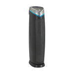 The 3-in-1 True HEPA Air Purifier is perfect for allergy sufferers. True HEPA captures 99.97% of allergens including pet dander, dust mites and pollen. The Pet Pure is an antimicrobial agent added to the filter to inhibit the growth of mold, mildew and odor-causing bacteria on the surface of the filter. According to the American Academy of Pediatric Allergy and Immunology, doctors recommend HEPA air filtration to reduce exposure to indoor asthma triggers. More than just a filter, the UV-C light kills germs, while the charcoal filter captures odors. CADR Rated 125+ and standing 28 inches tall, it is lightweight and ideal to use in both medium to large rooms. The easy to use digital display panel includes UV-C control, a filter change indicator and an up to 8 hour timer. 5 speeds provide high speed allergen control down to ultra-quiet sleep mode.
