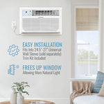 [Introducing the best through-the-wall air conditioner from Keystone! This 12,000 BTU unit offers supplemental heating, making it perfect for various living spaces like apartments and living rooms. With its powerful cooling capabilities, this modern and energy-efficient AC unit can effectively cool rooms up to 550 square feet. Featuring a quiet operation, this through-the-wall AC with remote control and a programmable timer ensures precise and customized cooling settings. The unit's dehumidification function removes up to 2.5 pints of moisture per hour, providing a more comfortable indoor environment. Stay cool with the coldest AC unit on the market while enjoying easy installation and the convenience of the Check Filter alert system for optimal performance and cleaner air circulation in your home.]