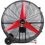 The Hyper Tough 42 inch, 2-speed, drum fan is ideal for heavy duty air circulation in agricultural or commercial applications. This fan is widely used in large spaces like factories, warehouses, garages, barns, greenhouses or gyms. The fan features a durable metal frame and 3 aerodynamically balanced aluminum blades for even air flow. This 2 speed, belt driven fan, is dependable and provides powerful, steady airflow to keep air moving in large spaces. The two 8 inch wheels on the stand and built-in handles make it easy to move the fan. A chord wrap is also included. If you need to improve air circulation in a large space, pick the Hyper Tough 42 inch 2-Speed Drum Fan.