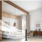 This 42" EcoQuiet DC Motor Tower Fan with remote control from Lasko features a sophisticated, space-saving design that blends beautifully into your home decor. This DC tower fan is over 60% more efficient than comparable AC tower fans. With whisper quiet operation, the New EcoQuiet fan is ideal for use in the bedroom, home office and main living areas or wherever you need air circulation. The quiet operation allows you to enjoy TV and provides white noise to lull you to sleep.