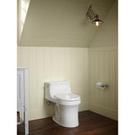 With sleek curves and a low-profile silhouette, the San Souci 1-piece toilet makes a strong design statement. A compact tank curves seamlessly into a round-front bowl for a space-saving profile. A 1.28 gal. flush provides significant water savings of up to 16,500 gal. per year, compared to a 3.5 gal. toilet, without sacrificing performance. This toilet comes with a Grip-Tight Reveal Q3 seat featuring innovative technology that prevents the seat from slamming and simplifies both cleaning and installation.