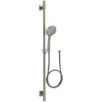 This all-in-one kit includes the Awaken 1.75GPM multifunction handshower, a 36" slidebar, and a 60" metal hose. Advanced spray performance delivers three distinct sprays - wide coverage, intense drenching, and targeted massage - with a smooth rotation of a thumb tab.