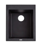 Compact yet robust, the 16" Holcomb granite composite sink delivers long-lasting performance for bar or prep areas. Its premium composite construction resists heat, stains, and scratches while maintaining a refined matte black finish. Designed for versatility, it can be installed as a drop-in or undermount sink to suit any countertop style. With its solid durability and modern appearance, it’s a perfect balance of functionality and design for busy kitchens or auxiliary workspaces.
