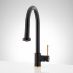 Signature Hardware 951732 Ridgeway 1.75 GPM Single Handle Pull-Down Kitchen Faucet Complete your kitchen sink with the modern and efficient Ridgeway Pull-Down Faucet. Boasting convenient, easy-to-use features, this fixture makes food prep and dishwashing a breeze. With the push of a button, you can seamlessly switch between aerated stream or spray