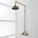 Signature Hardware 922235 Baudette Retrofit Shower with Shower Head, Shower Arm, and Cross Handles - Aged Brass.