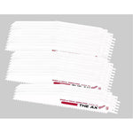 The AX Demolition Sawzall Blade is designed to reduce bending and breaking. Bi-metal blade is wider and thicker than standard blades yet fits all reciprocating saws. Nail Guard offers a unique design that protects against tooth fracture. Fang Tip teeth bite into wood on first contact and are made of Matrix II bi-metal for greater durability. 1/2 universal shank. Ideal for plumbing, remodeling, and demolition work. No. 48-00-5021: Type: Demolition The AX, Blade Length: 6, Teeth Per Inch: 5/8 TPI, Material: Bi-Metal, Application: Wood, Nail-Embedded Wood, Pkg Qty: 5, Package Type: Clamshell No. 48-00-5026: Type: Demolition The AX, Blade Length: 9, Teeth Per Inch: 5/8 TPI, Material: Bi-Metal, Application: Wood, Nail-Embedded Wood, Pkg Qty: 5, Package Type: Clamshell No. 48-00-8026: Type: Demolition The AX, Blade Length: 9, Teeth Per Inch: 5/8 TPI, Material: Bi-Metal, Application: Wood, Nail-Embedded Wood, Pkg Qty: 25, Package Type: Box No. 48-01-2006: Type: Demolition The AX, Blade Length: 9, Teeth Per Inch: 5 TPI, Material: Bi-Metal, Application: Wood, Nail-Embedded Wood, Pkg Qty: 1 No. 48-01-2007: Type: Demolition The AX, Blade Length: 12, Teeth Per Inch: 5 TPI, Material: Bi-Metal, Application: Wood, Nail-Embedded Wood, Pkg Qty: 1 No. 48-00-5027: Type: Demolition The AX, Blade Length: 12, Teeth Per Inch: 5/8 TPI, Material: Bi-Metal, Application: Wood, Nail-Embedded Wood, Pkg Qty: 5, Package Type: Clamshell No. 48-00-8027: Type: Demolition The AX, Blade Length: 12, Teeth Per Inch: 5/8 TPI, Material: Bi-Metal, Application: Wood, Nail-Embedded Wood, Pkg Qty: 1