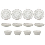 12-Piece Set Includes: (4) Dinner Plates, (4) Salad Plates and (4) Cereal Bowls