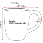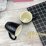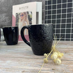 This 6-piece coffee mug set combines style and practicality with its black ceramic construction and embossed multi-pattern designs. Each mug holds 11.8 fl oz (400 ml), making it suitable for a variety of hot and cold beverages including coffee, tea, milk, and cocoa. Made from fine porcelain with a high-quality glaze that is cadmium-free, these mugs are fired at high temperatures to ensure durability and resistance to scratches and chips. They are microwave and dishwasher safe for convenient heating and cleaning. The unique embossed patterns—waves, peacock feathers, fish scales, hexagons, flowers, and dots—add aesthetic appeal while helping users easily distinguish their mugs. The ergonomic handle design provides a comfortable grip with ample space between the handle and the mug body. This set is ideal for home kitchens, offices, hotels, or restaurants and makes a thoughtful gift for birthdays or holidays.