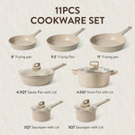Carote M9C 11-Piece Nonstick Cookware Set with Lids, Induction Compatible, Taupe