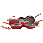 Cooks new and experienced alike will appreciate the essential pieces included in the Rachael Ray 15-Piece Hard Enamel Nonstick Cookware Set. Whether you're simmering and searing or browning and baking, Rachael Ray cookware has you covered. From the reliable cooking performance to the fun, contemporary colors and durable materials, the pots and pans in this collection can handle everyone’s favorite dishes and then some. Sturdy aluminum construction promotes even heating, helping to reduce hot spots that can burn foods, and the bold two-tone enamel cookware exteriors show plenty of stylish kitchen personality.