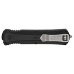 The Smith & Wesson M&P OTF (Out-The-Front) Spring-Assisted Knife is an incredibly cool knife at great price. The 3.5" spear tip blade keeps things clean and snag-free, for a solid, purpose-built knife. Notice the glass breaker conveniently located on the bottom of the handle. A belt clip allows you to carry the blade in your pocket, tip down. A 2-position safety allows you to lock the blade and prevent accidental deployment. The spring-loaded blade release is large and simple to actuate. Blade length: 3.5''. Closed length: 5.2". OAL: 8.75".