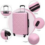 Amalodie W-77023-PINK 3 Piece Luggage Sets,ABS Hardside Suitcase,Carry On Luggage with Lightweight Durable Spinner Wheels,Pink We are committed to the design, production and sale of fashionable and practical travel products. This three-piece suitcase set includes three different sizes of 20 ", 24" and 28 ", perfectly adapted to a variety of travel needs. The color matching design of many accessories makes the luggage look fashionable and high-end. silent wheels and adjustable pull rod make your travel easier.Worldwide 【3-Piece Nested Luggage Set】: This versatile collection includes 20", 24", and 28" suitcases, designed to nest compactly within one another for effortless storage. Ideal for weekend escapes, family holidays, or business travels, this set ensures you’re equipped for any journey with practicality and style.