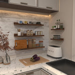 Ample storage space: A set of 5 wall shelves can create ample storage space helping you efficiently organize items in your kitchen bathroom living room office bedroom bar cafe hallway and other indoor spaces. Versatile storage function: To meet different storage needs in different places this wall shelf set provides storage spaces in different sizes. You can place picture frames small plants or decorations on these wooden shelves to organize and decorate your home space. Easy to install: The wall storage shelf already has pre-drilled holes and comes with necessary installation hardware and a level. You only need to follow the instructions to install it. The installation process won t take too much time. Beautiful wooden shelf: This shelf is made of high-quality synthetic wood and its surface texture is pleasing to the eye. It is not only a storage tool but also a decoration.