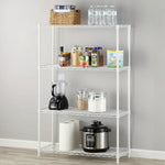 Hyper Tough 4 Tier Wire Shelving Rack is perfect for all your organizational needs. It has strong and durable welded wire construction with an open design that allows air circulation and reduces dust build-up. Shelves can be adjusted in 1 in. increments and can hold up to 350 lbs. evenly distributed. This wire shelving system is perfect for homes, offices, kitchens, restaurants and other places you need to organize.
