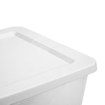 The Sterilite 58 Quart Clear Storage Bin with Snap-On Lid is a versatile storage container designed to simplify organization throughout your home. Its clear plastic base allows you to quickly identify contents without opening the bin, while the white snap-on lid ensures items remain securely contained. The bin's rectangular shape and deep recessed lids enable stable stacking, optimizing vertical storage space in closets, bedrooms, garages, and dorm rooms. Crafted from durable BPA-free plastic, this storage box is safe for everyday use and easy to clean with a damp cloth. It is perfect for storing blankets, towels, seasonal clothing, keepsakes, and games. The design encourages careful stacking by recommending the heaviest bins be placed at the bottom to maintain stability. With no assembly required and a contemporary finish, this storage bin offers a practical and stylish solution for managing household clutter efficiently.