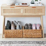 Style up your storage! Are you looking for the best of both worlds? Well, that's where we come in! Beautifully designed with built-in handles, our woven bins are here to add storage and style to any space. The Medium Woven Bin measures L 17.13 x W 11.61 x H 8 inches and is compatible with The Home Edit clear plastic large and narrow bins for extra organization.