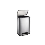 Tramontina's durable stainless steel 13 Gal Step Can is a stylish and functional solution to organize rooms in any home or commercial space. Unique features include a sturdy and sleek stainless steel satin-finish body with a print- and stain-free coating, a dense polypropylene lift-out liner with vented base for easy bag removal, and an easy step-open pedal with a soft-closing lid.