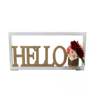 Make a statement with 36" Pre-lit Spring Décor. This décor piece stands 36" wide and 14" high and will warmly welcome friends and family into your home this season. Hang it on the wall or stand it on your mantle to bring a touch of cheer to your home décor. Spelling out the word " Hello", this piece features a springtime floral arrangement that welcomes the season with a fresh burst of color.