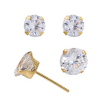 These lovely 6/7mm Cubic Zirconia 10kt Yellow Gold Stud Earrings will complement formal attire and casual outfits. The jewels are presented in a secure four-prong settings. Two different sizes make this set of sparkle stud earrings a versatile accessory for your wardrobe. Wear the larger pair for a festive flair and the smaller pair for a more subtle accent. With two sizes to choose from, you'll always have the perfect size earrings for every occasion.