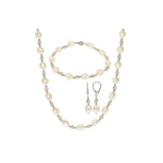 Cultured Women's Freshwater Pearl and Diamond Cut Bead 3 Piece Set - Unique Design