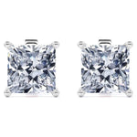 4 Prong - 1 Carat Princess Cut Moissanite - Solitaire Stud Earrings - 18K White Gold Plating Over Silver