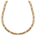 Elevate your style with the Brilliance Gold-Plated Sterling Silver Hugs and Kisses Necklace. This exquisite piece, crafted from fine sterling silver and plated with rich gold, features a delicate design inspired by the classic Hugs and Kisses motif. Measuring 17.5 inches, it sits elegantly around your neckline, adding a touch of sophistication to any outfit. Whether dressing up for a special occasion or adding a touch of elegance to your everyday look, this necklace makes a thoughtful gift for yourself or a loved one. Its timeless design and high-quality materials ensure it will be a cherished addition to any jewelry collection.
