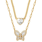 Brilliance Fine Jewelry S901266CZW-16.WM Women's Cubic Zirconia Yellow Gold Plated Sterling Silver Heart and Butterfly Necklace Set, 18" Delight in the elegance and charm of the sparkling women's cubic zirconia and butterfly necklace set. Handcrafted in sterling silver and yellow gold plated, this set includes two delicate pendants: a sparkling heart and an intricately detailed butterfly adorned with cubic zirconia accents for a dazzling touch. The 18-inch chain offers a versatile fit, perfect for layering or wearing alone to complement any outfit. Whether given as a gift or as a personal treat, this necklace set adds timeless beauty to every jewelry collection.