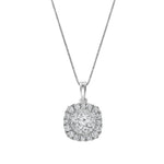 The Unique Moments 1.00 ct Lab Grown Diamond Cushion Halo Pendant Necklace is a timeless piece that combines elegance and sophistication. Featuring a cushion-shaped halo design, this necklace showcases lab-grown diamonds with a total weight of 1.00 ct, set in sleek 14K white gold. The pendant dangles effortlessly on an 18-inch box chain, making it a perfect accessory for any outfit. Ideal for special occasions such as weddings, anniversaries, or even as a thoughtful gift for loved ones, this necklace is designed to be cherished. It is suitable for both adults and teens and comes with IGI certification to the quality of the diamonds. Whether dressing up for a formal event or adding a touch of sparkle to your everyday look, this pendant is sure to impress.