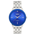 Add a luxurious touch to your look with this silver-tone stainless steel bracelet from Armitron. The sapphire blue sunray dial features silver-tone markers and a Diamond at 12H. The bracelet closes with a one touch, two button fold-over buckle and is water resistant to 165 feet.Armitron Men's Silver-Tone Watch